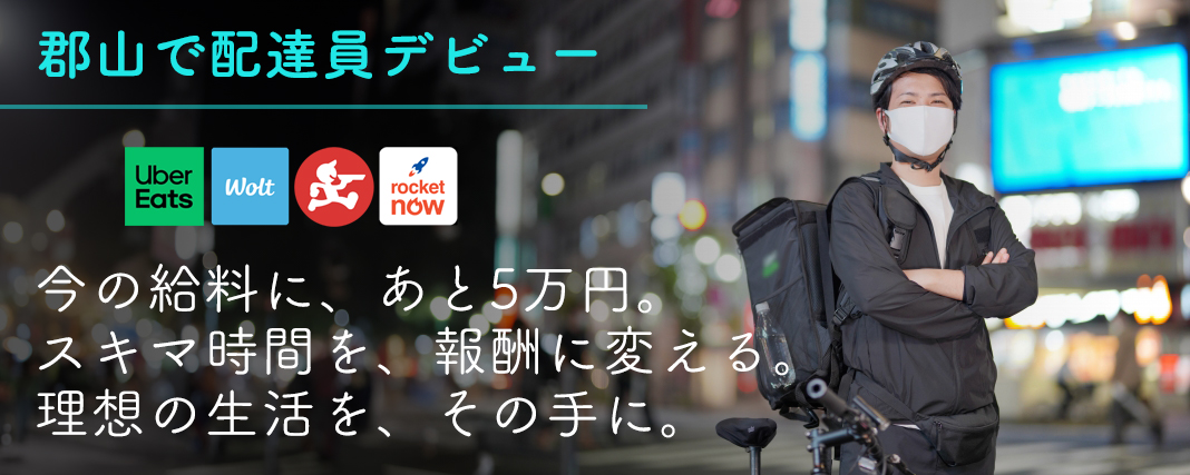 今この瞬間も、郡山駅前やうねめ通りでは誰かが最初の1件を運び、報酬を得ています. 次に新しい自由を手に入れるのは、あなたの番です。